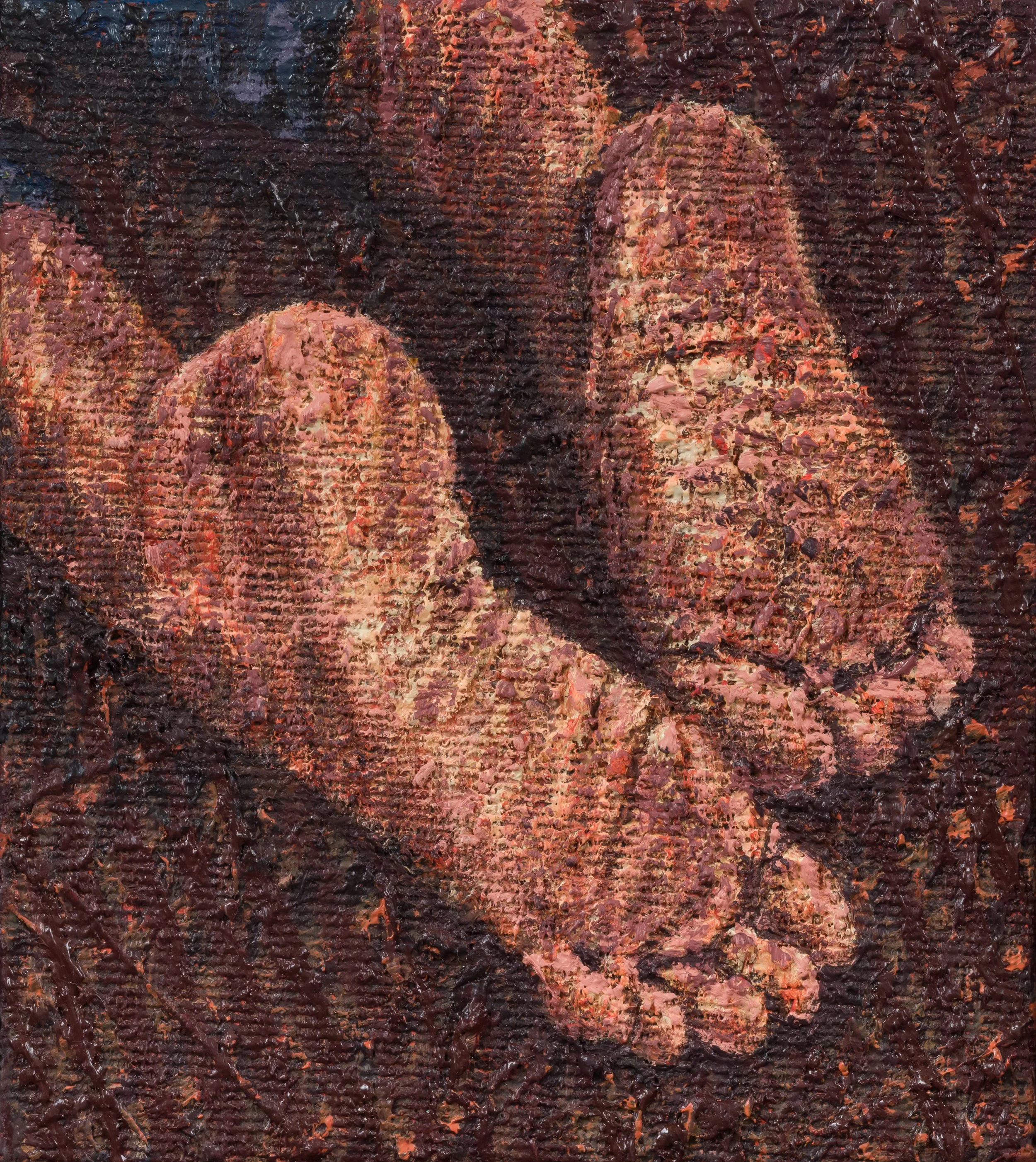 Spina’s photographic references are chosen for what they withhold, images that carry tension, that resist easy reading, that bite. The canvas becomes the place where the ordinary undergoes transformation, emerging as something even he didn't anticipate. At Cassina Projects, this impulse took architectural form: a room built within the gallery held a single painting, La promessa, 2025, simultaneously monolithic and intimate, personal yet open to a stranger's associations. His figures, when they look back, collapse the comfortable distance between painting and viewer, drawing the body close, then pushing it away, letting detail dissolve into abstraction and resolve again. The encounter is never passive.